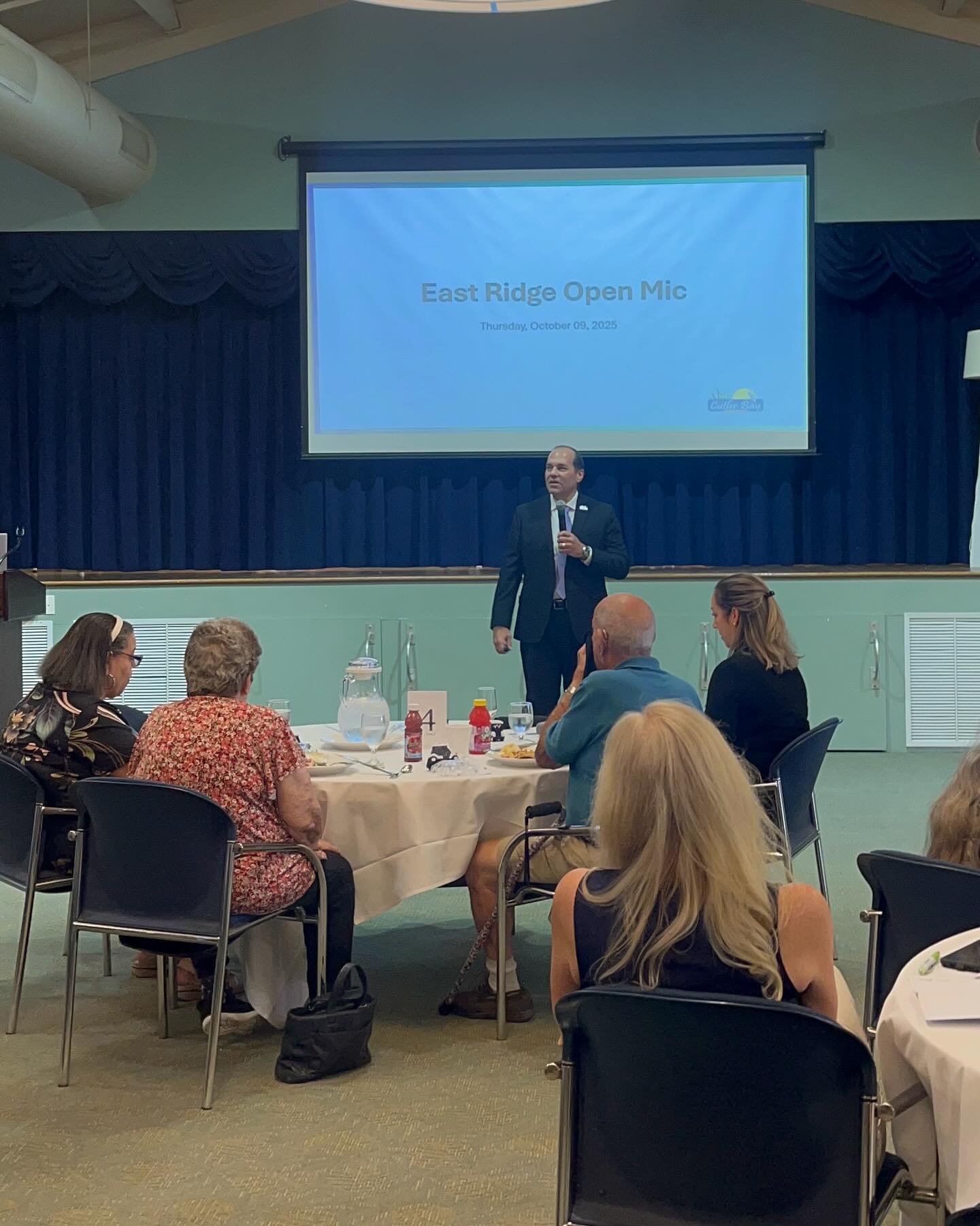 On Thursday, October 9th, East Ridge Village had the pleasure of hosting the Town of Cutler Bay’s Open Mic Night, led by Town Manager Rafael Casals. This special event brought together residents from both East Ridge Village and the greater Cutler Bay community for an open, engaging discussion about local initiatives, upcoming projects, and shared concerns.